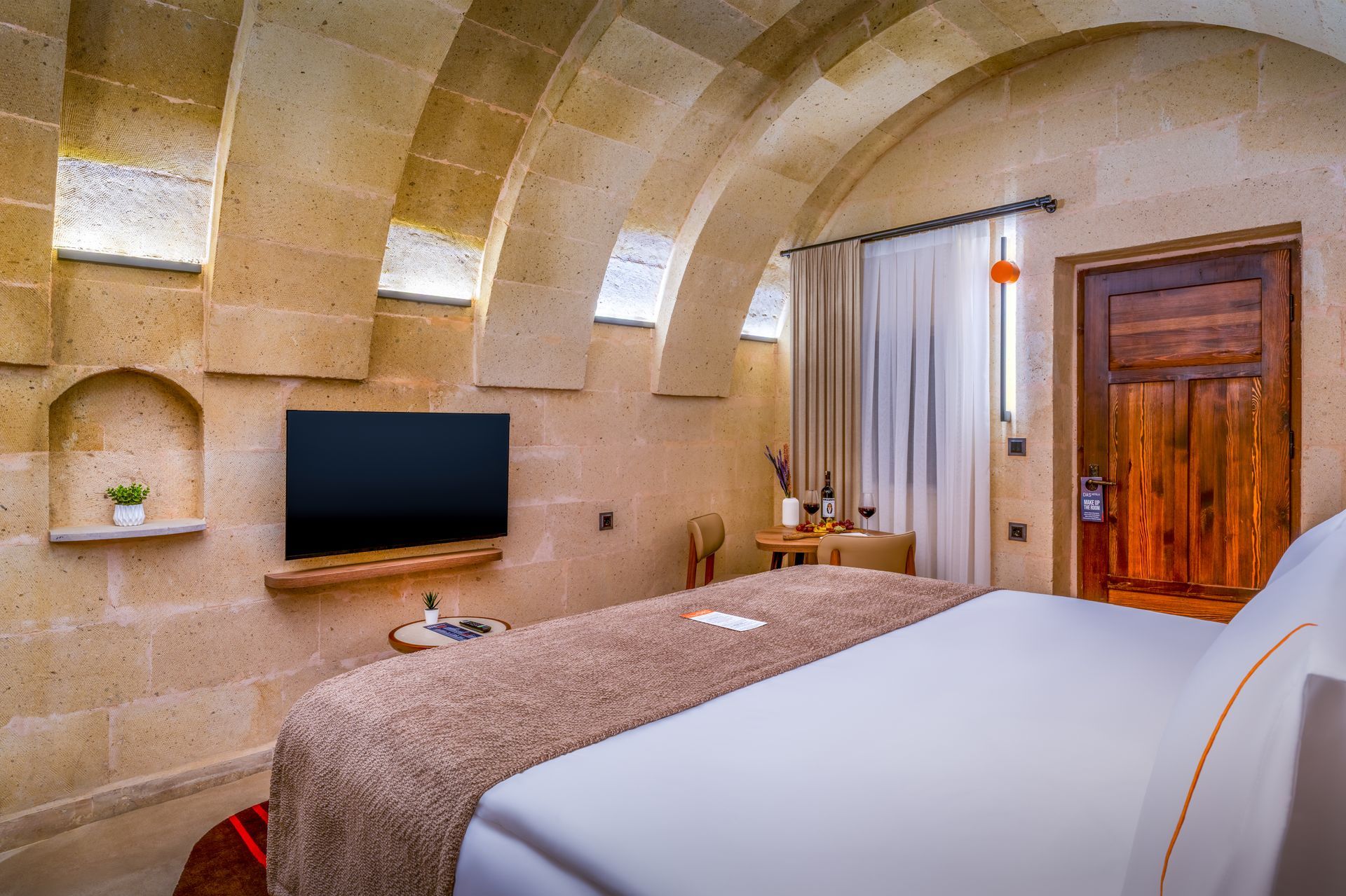 Equipped with LCD TV, complimentary Wi-Fi, digital safe, minibar, Nespresso coffee machine, kettle, and tea & coffee setup, the Deluxe Room is an ideal space to relax after a day of exploring Cappadocia.