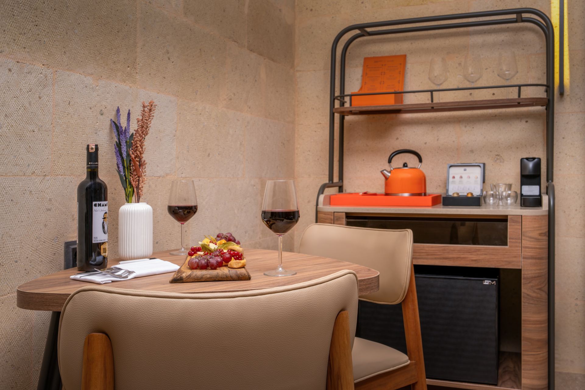 Kapadokya’nın büyüsünü yansıtan sıcak tonlar ve şık detaylarla tasarlandı. Uçhisar Kalesi’ne bakan bu özel süit, zarafetle huzurun birleştiği bir konaklama deneyimi sunar.